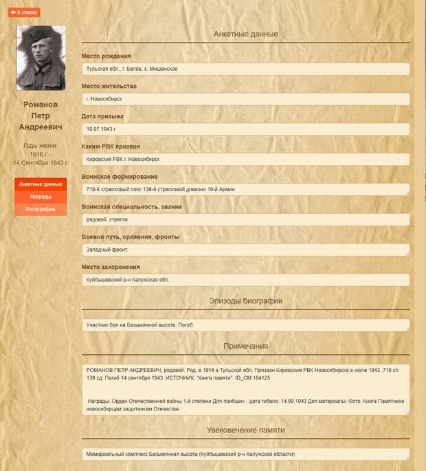 Рядовой Романов Петр Андреевич (1916 - 1943)