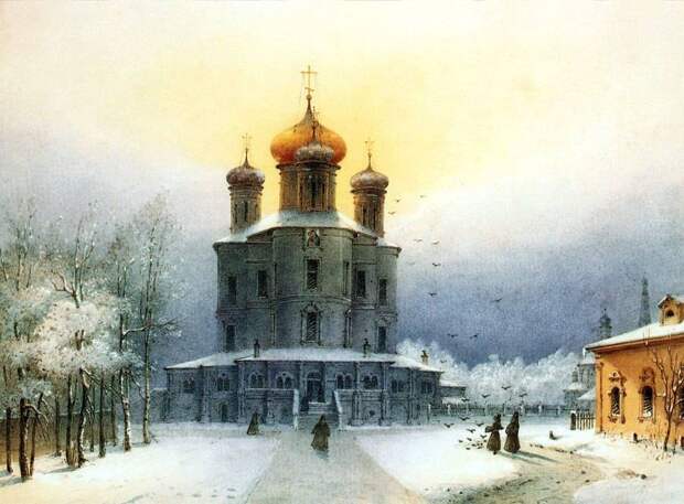 Вид Большого собора Донского монастыря в Москве зимой, Йозеф Андреас Вайс