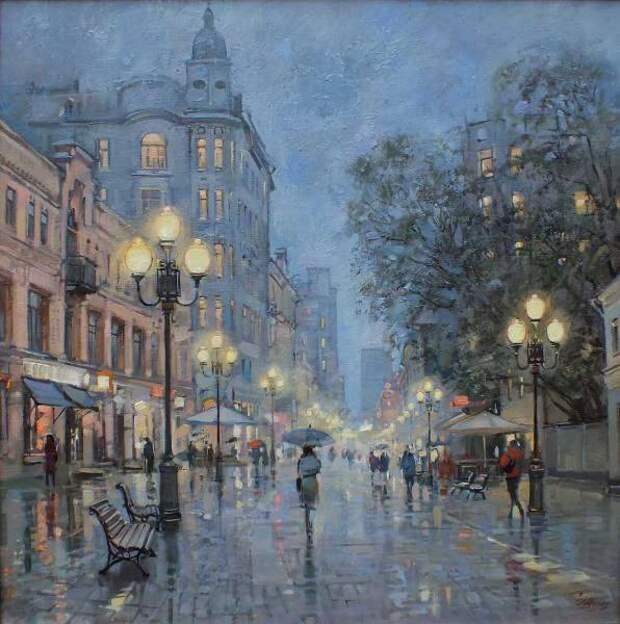 Художник пишет городские пейзажи так, что они дарят радость и наполняют теплом.