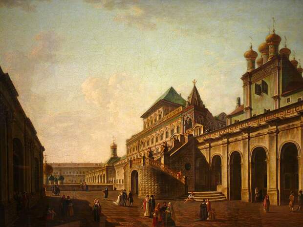 Боярская площадка, или Постельное крыльцо, и храм Спаса за Золотою решёткой в Московском Кремле, 1800-е