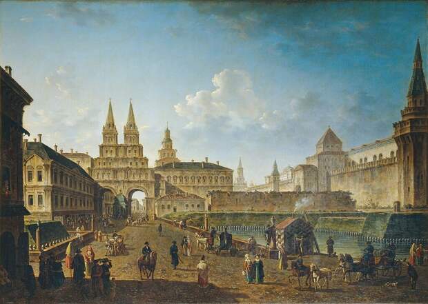 Вид на Воскресенские и Никольские ворота и Неглинный мост от Тверской улицы в Москве, 1811