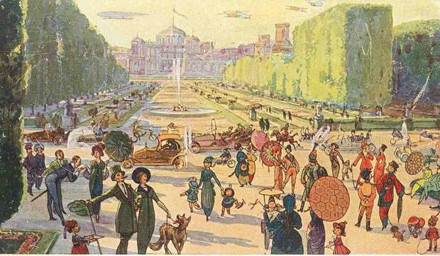 В 1914 году фабрика «Товарищество Эйнемъ» выпустила серию из восьми футуристических почтовых открыток. Открытки были частью рекламной акции: их вкладывали в коробки с шоколадными конфетами, чтобы привлечь покупателей. Имя художника неизвестно, несмотря на популярность серии.