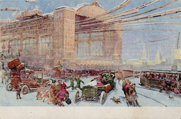 Центральный вокзал (Центральный вокзал земных и воздушных сообщений). Зимний пейзаж со снегом.