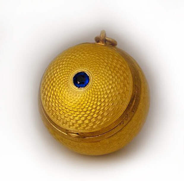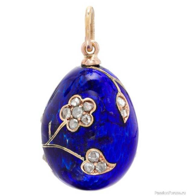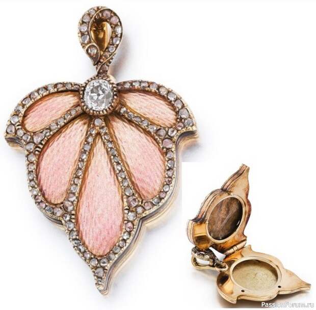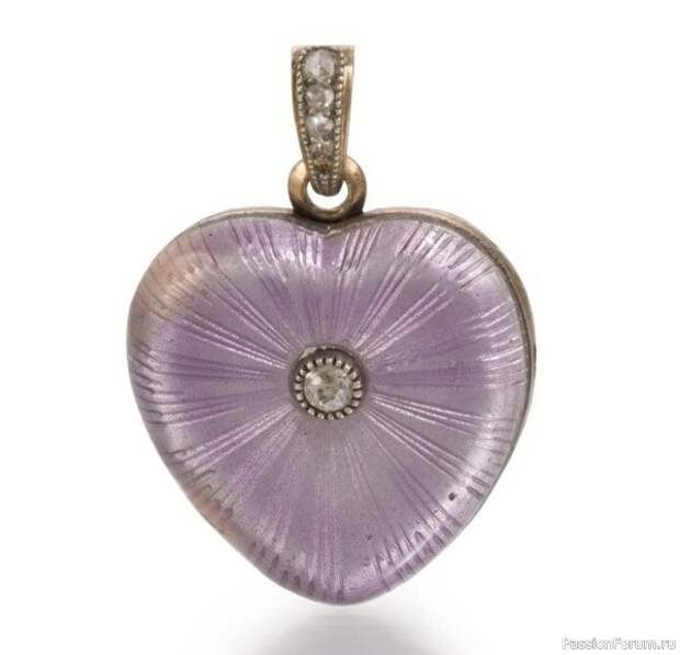 Золотой кулон, украшенный гильошированной эмалью и бриллиантами, высота 2 см, мастер Август Хольминг, фирма Фаберже, Санкт-Петербург, 1899-1903 гг.