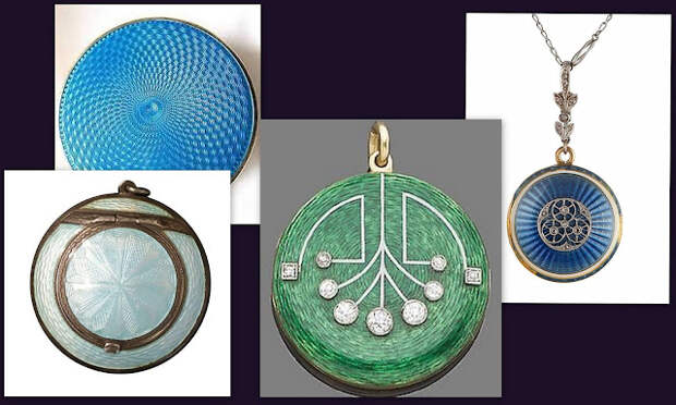 Гильошированные эмали. Guilloché с французского — повторяемый узор волнистых линий. В ювелирном искусстве понимается как возможность станковой гравировки по благородным металлам, с целью нанесения геометрического узора с оптическим эффектом. Линии могут быть как параллельными, переплетающимися так и перпендикулярными.