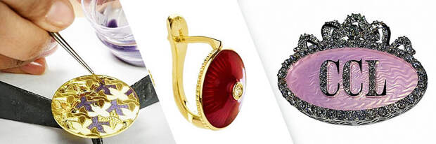 Сегодня «Русские Самоцветы» — единственный ювелирный дом, который сохранил технику нанесения гильошированной эмали. Каждое украшение расписывается вручную двумя основными способами: