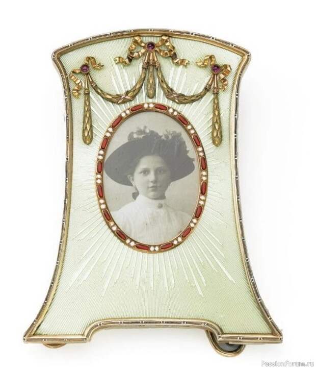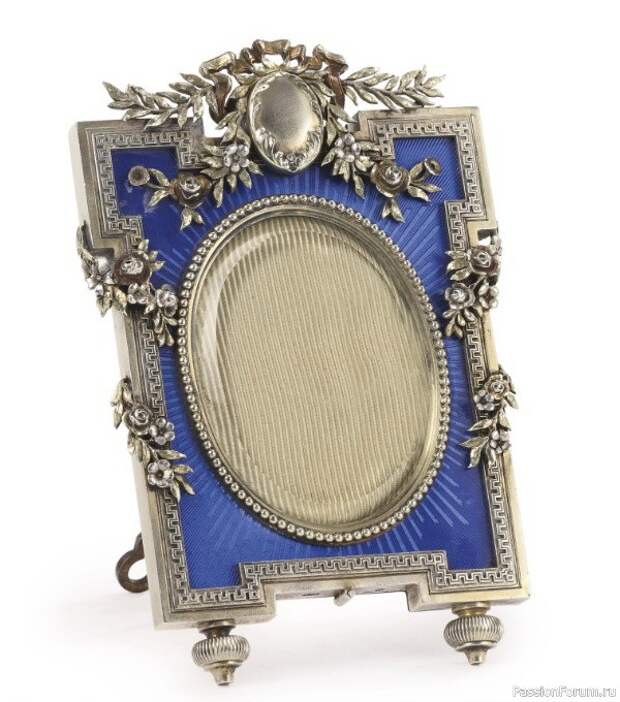Серебряная позолоченная рамка для фотографий, украшенная гильошированной эмалью и драгоценными камнями, мастер Ялмар Армфельдт, фирма Фаберже, Санкт-Петербург, около 1900 г.