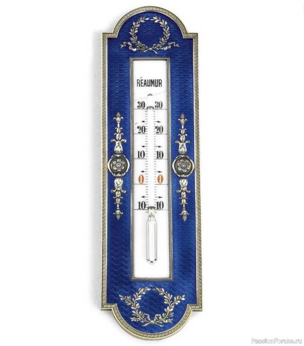 Серебряный позолоченный термометр, украшенный гильошированной эмалью, мастер Виктор Аарне, фирма Фаберже, Санкт-Петербург, 1899-1908 гг.