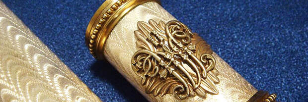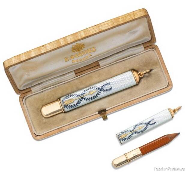 Золотой футляр для карандаша, украшенный гильошированной эмалью, фирма Фаберже, Санкт-Петербург, 1898-1908 гг.