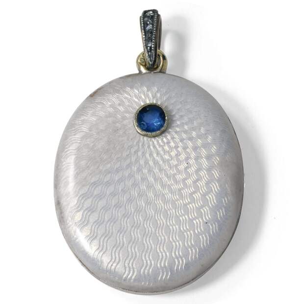 Золотой медальон, украшенный гильошированной эмалью и бриллиантами, мастер Август Хольминг, фирма Фаберже, Санкт-Петербург, 1908-1917 гг.
