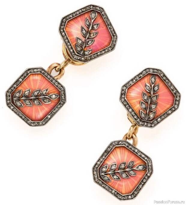 Золотые запонки, украшенные гильошированной эмалью и бриллиантами, мастер Август Хольминг, фирма Фаберже, Санкт-Петербург, 1899-1908 гг.