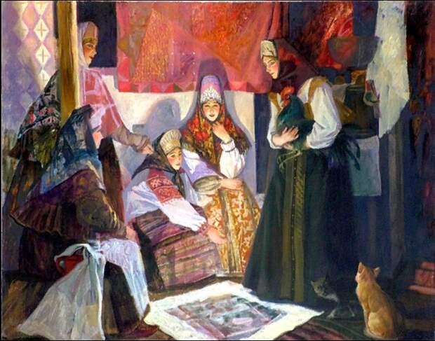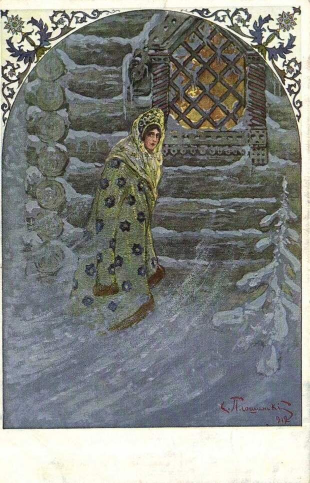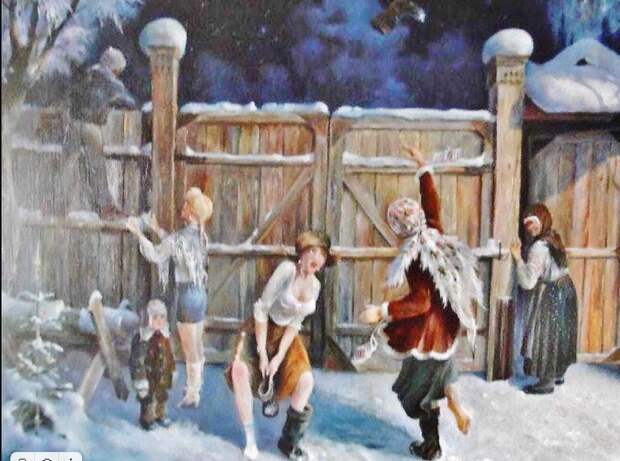 Открытка, Сергей ПлошинскийЭта традиция жива и по сей день. По крайней мере, я знаю молодых девочек-москвичек, моих соседок, которые под Старый Новый год большой компанией ради гаданий даже на дачу собрались поехать. Там-то, на природе, легче погрузиться в атмосферу сказки, представив себя девушками из далекого прошлого, с замиранием сердца ожидающих ответа на вечные девичьи вопросы.