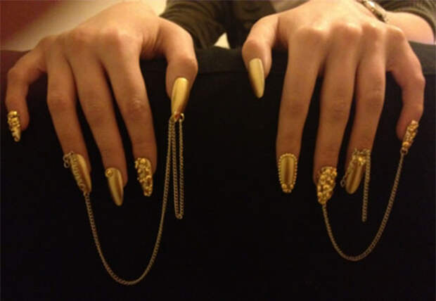Кожаные перчатки с серебряными ногтями, Анна Сара Давик (mmeasdavik.com)Но больше всего поражает в этой связи количество реплик, фейков и просто недорогой бижутерии, которой заполонен сейчас интернет. Почему бы и нет? Признаться, я все-таки отношусь ко всевозможного рода когтям, как к театральному реквизиту - недаром их так активно стали использовать звезды для создания сценических образов. Жизнь - игра. В ней есть место и некоторому эпатажу. Только представьте выражение лица вашего начальника, когда вы вручаете ему в новом образе, предположим, документы (шучу). Мода есть мода - почему бы не примерить на себя образ китайской императрицы или фантастической хищной птицы?