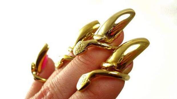 На фото: кольцо-ноготь (фаланговое кольцо) со змейкой Bijules (Нью-Йорк), цена в пределах 300$, в России, насколько мне известно, не продаются.