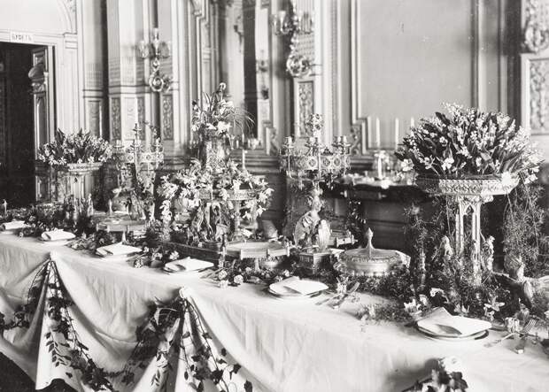 Для столовой хозяевами был заказан неоготический сервиз из серебра. Как признался Карл Фаберже, это лучшее творение за всю историю мастерской его семьи. Да и самое дорогое. Кстати, сервиз загадочно исчез. Его по-прежнему ищут — как янтарную комнату.