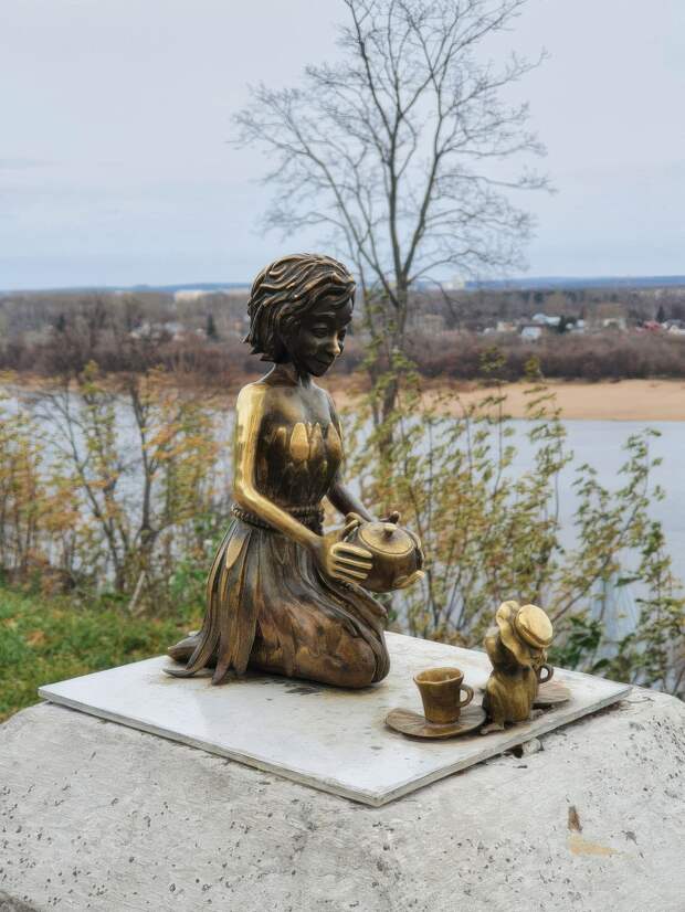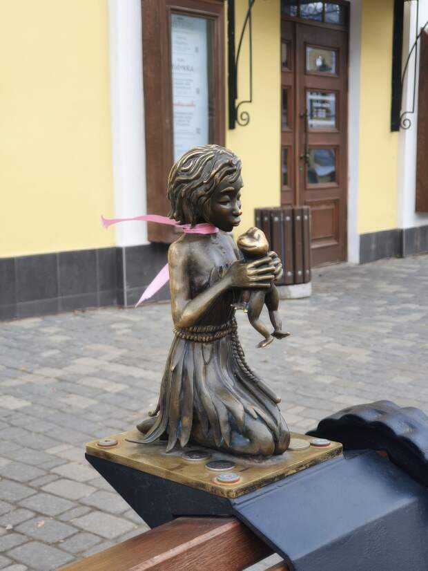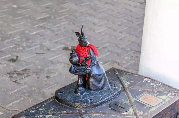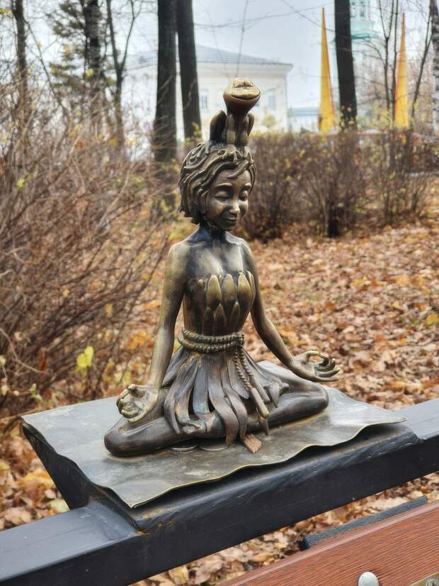 Здесь в их честь даже маленькие фигурки установили. У каждой кикиморы есть друг - маленький лягушонок, который сопровождает свою подругу повсюду.