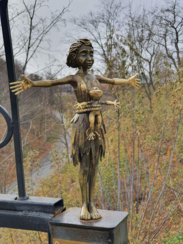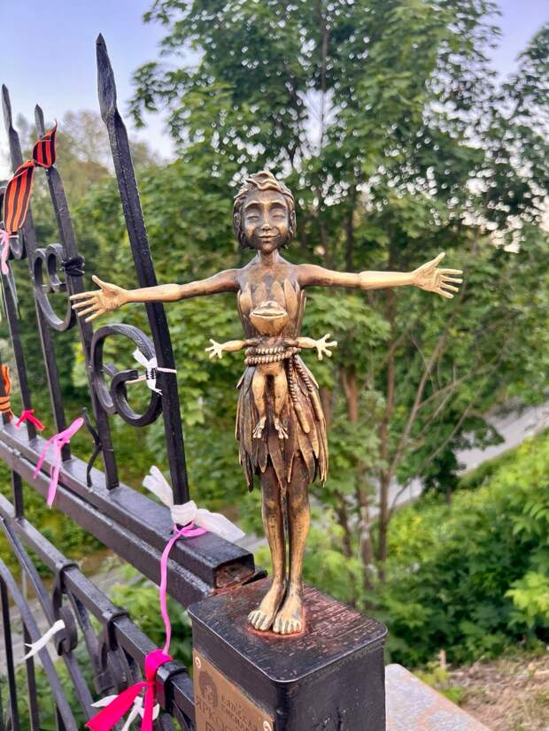 Самая неоднозначная фигурка из всех - Яркость. Лично мне она напомнила сцену из Титаника, помните? А вот в контексте города... эту кикимору установили на поручне моста, в народе прозванном мостом самоубийц. Крайне неоднозначно, верно?