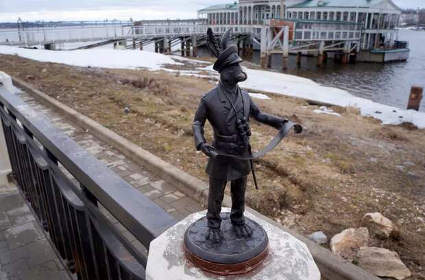 Зайца-Зимогора вы найдёте лежащим на скамейке.Кострома расположена на реках Волге и Костроме, а Волга всегда была важной водной артерией страны. Так что не удивительно, что в Костроме на набережной в районе кафе «Старая пристань» решили установить фигурку Заяйца-Моряка.
