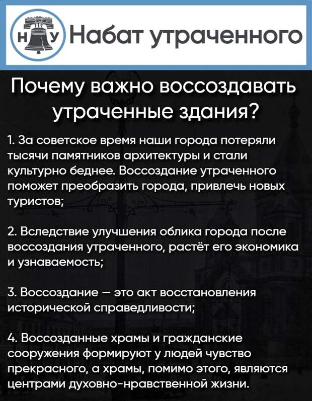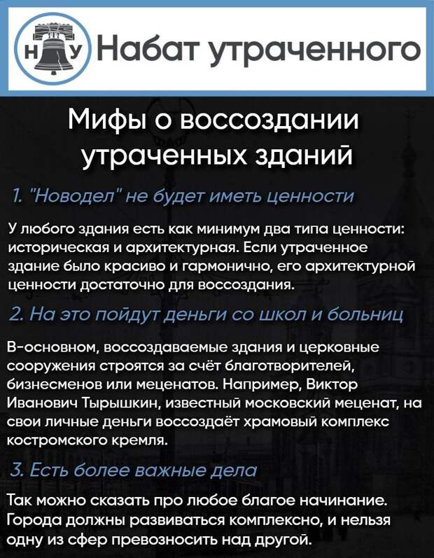 Почему важно воссоздавать утраченные здания и какие есть мифы об этом процессе?