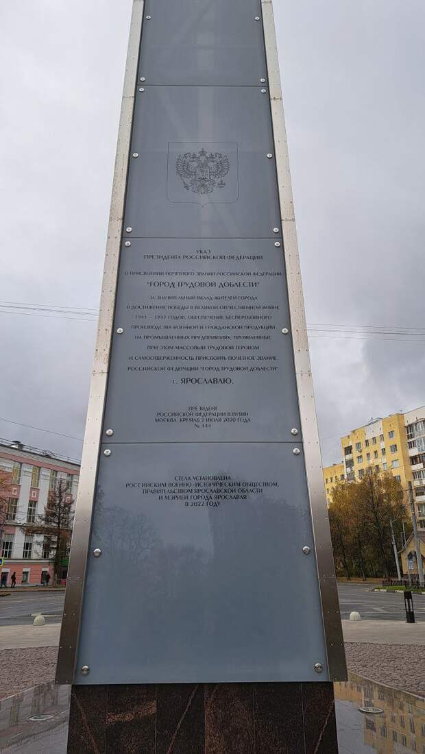 Стела «Город трудовой доблести», установленная в Ярославле в 2022 году