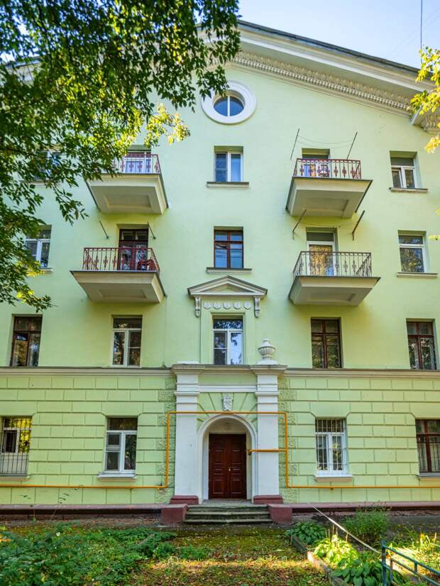 «Дом с лампочкой» отличный пример послевоенной малоэтажной застройки, которой так не хватает большим городам. В доме всего три этажа, и он чуть ли не единственный такой во всём районе.