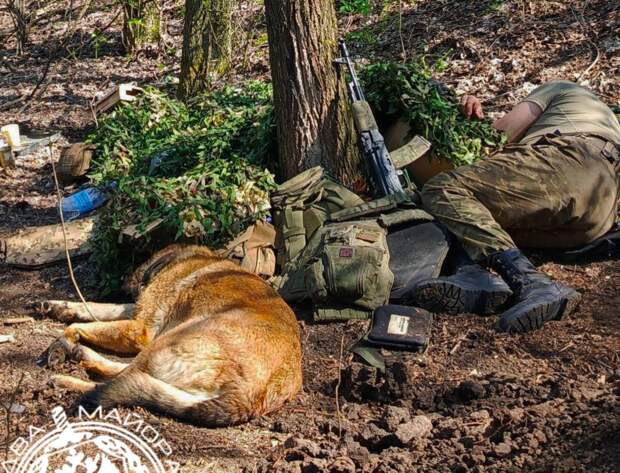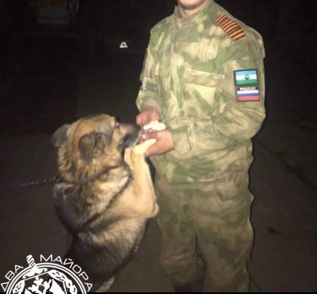 Чувствую, что-то зацепил, замер... Понимаю — попал. Своим показываю: «назад». Смотрю — вроде не до конца натянул, и медленно отхожу в сторону, и тут как долбануло. Меня отбросило взрывной волной. Лежу, вроде живой, только шевелиться больно. Ребятам говорю, чтобы не подходили, а то мало ли. Чувствую сзади кто-то трогает, оборачиваюсь и вижу: собака треплет слегка за берцы и как будто утащить меня хочет.