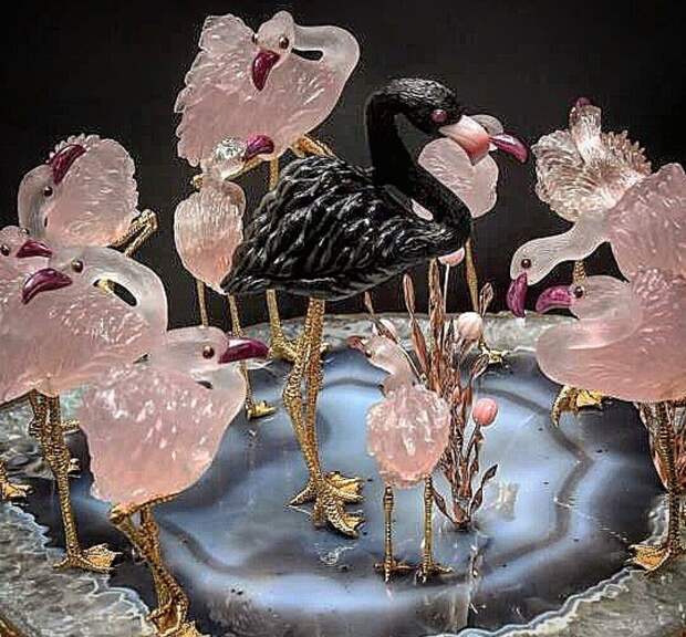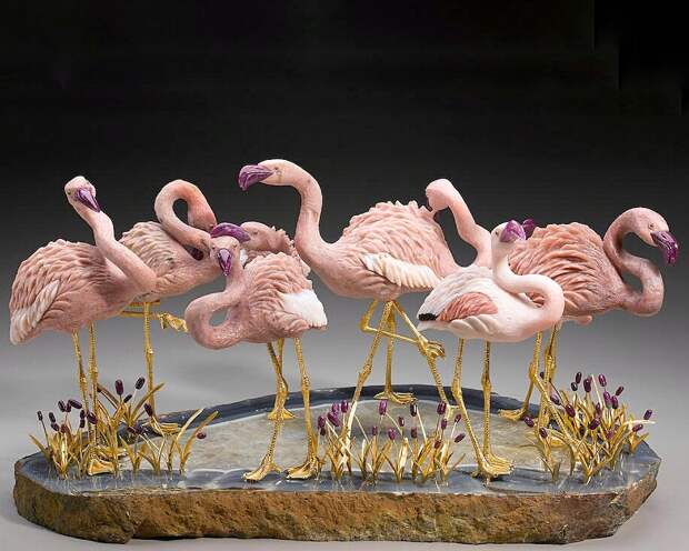 Фламинго из розового опала на основе из агата. Цена 20-30 тысяч долларов.