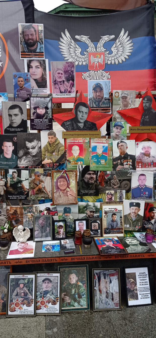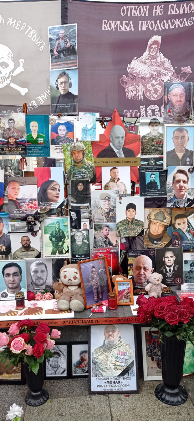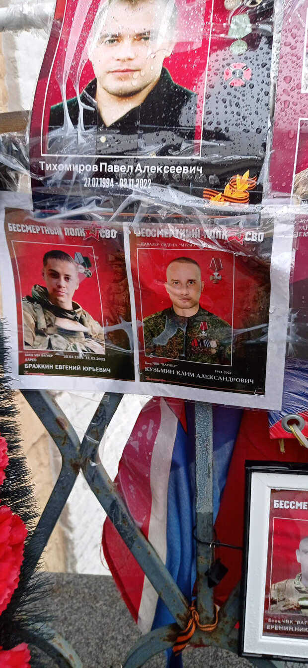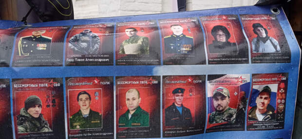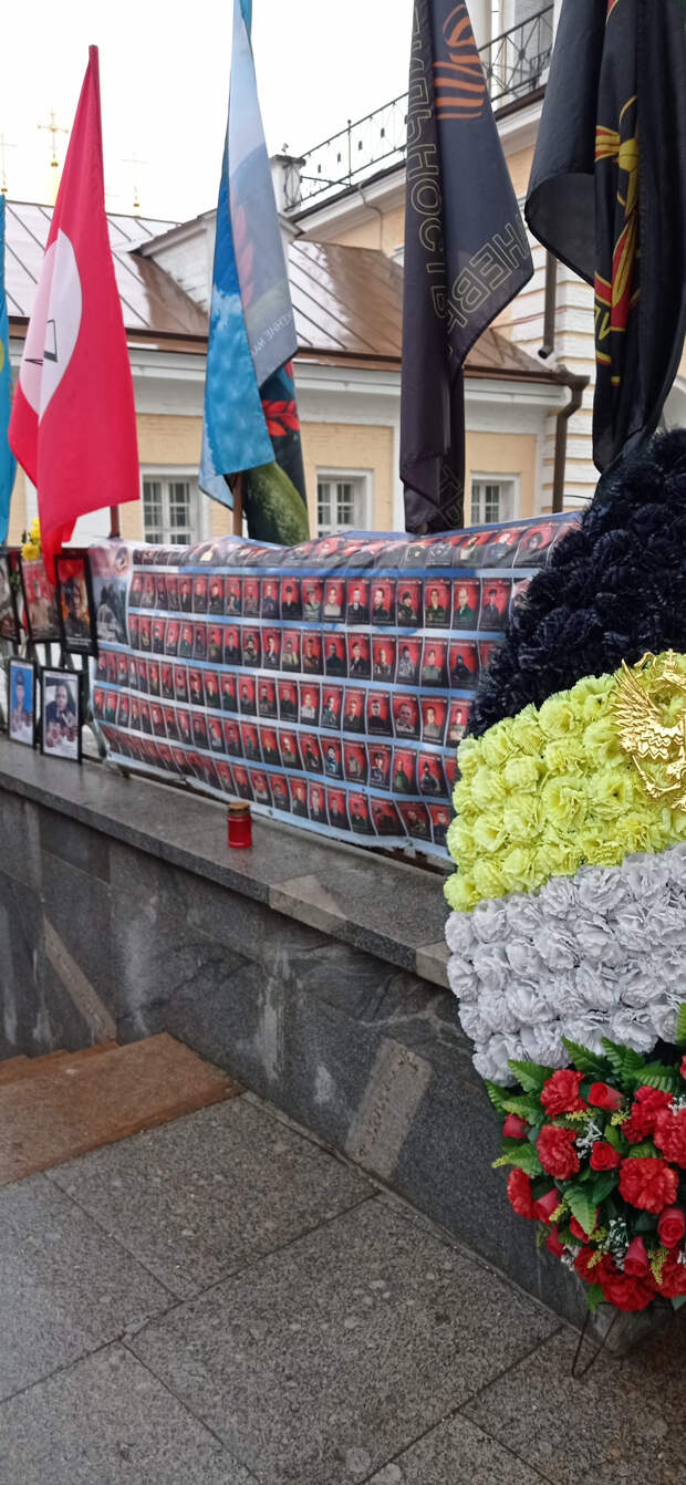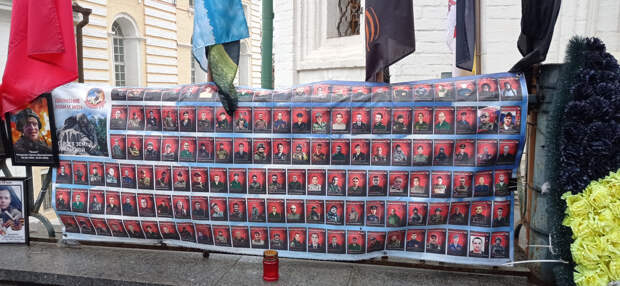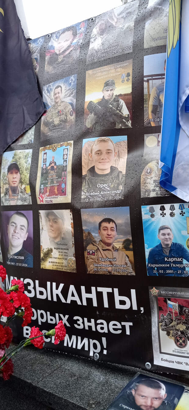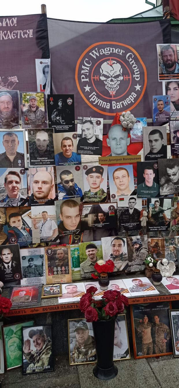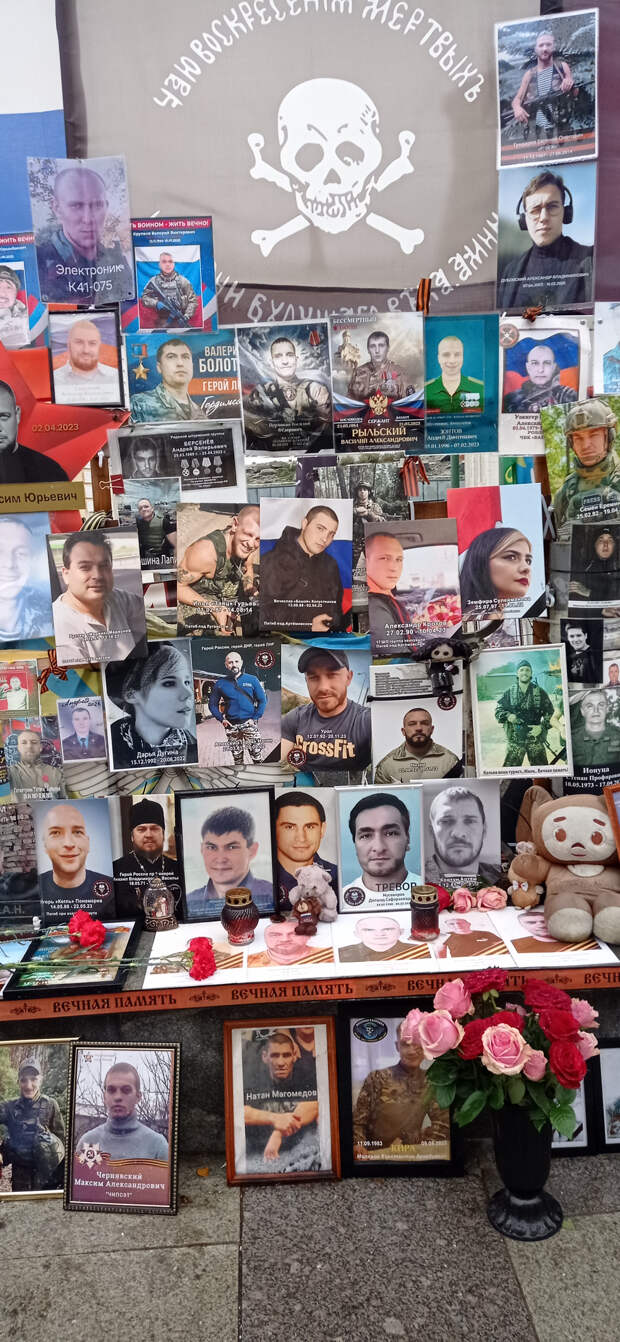 Раньше это не поместилось в предыдущие материалы. 26 ноября 2025 года (2 месяца назад) Я была по своим делам в центре Москвы. Когда я там бываю (не так уж и часто), я всегда стараюсь посетить так называемый "стихийный народный мемориал" наших Павших Воинов. Вот и в этот раз я там побывала. И нашла то, что меня очень порадовало (если вообще можно применить слово радость). Там появились 2 объекта (честно не знаю как назвать правильно), на которых напечатаны портреты работ Вадима Окладникова и портреты, которые были выполнены позднее, но в стиле работ Вадима. Вот их и хочу показать. Правда был дождь, отсюда и не очень хорошего качества снимки. Но как уж смогла. Зато могу с Вами поделиться.