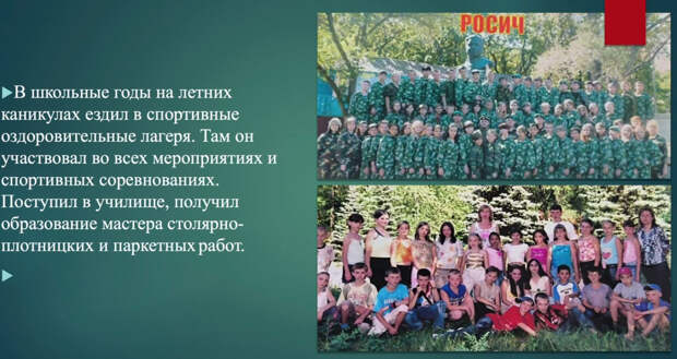В 2001 году пошёл в школу, окончил девять классов, учился хорошо. Поступил в училище, получил специальность «мастер столярно-плотницких и паркетных работ».