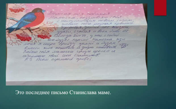 ...Последнее поздравленье от Сына вслух читает: