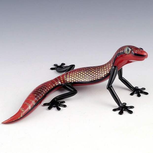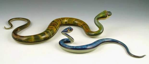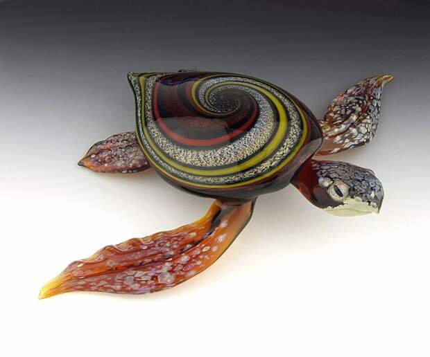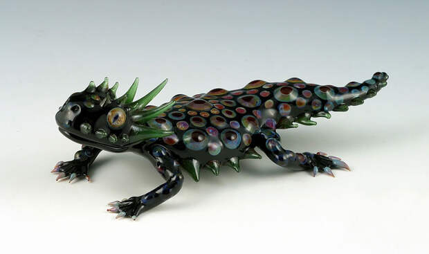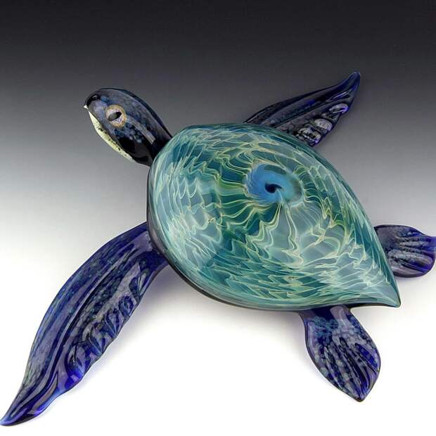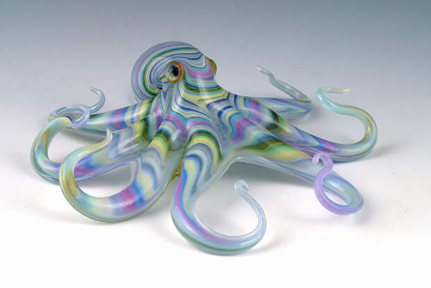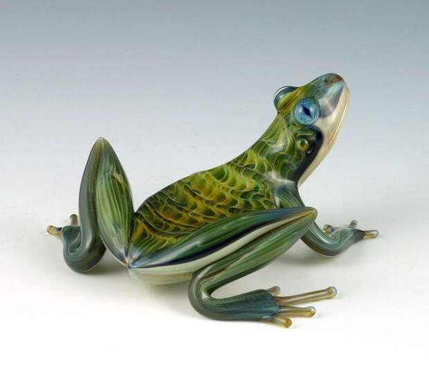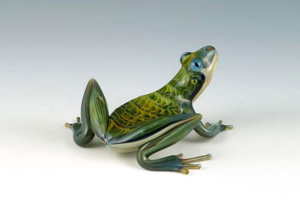Скотт Биссон, страстный стеклодув из Орегона, создаёт замечательные стеклянные фигурки ручной работы, выполненные в красивых и нежных тонах. Он часто изображает водных обитателей или земноводных, чьи естественные формы хорошо сочетаются с текучестью расплавленного стекла, которое он формирует.