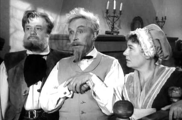 Евгений Леонов в роли КороляКадр из фильма *Обыкновенное чудо*, 1978 На роль трактирщика Захаров позвал еще одного ленкомовца – Александра Збруева. Однако тот от роли отказался, и сыграл ее Юрий Соломин. Интересно, что когда Соломина назначили министром культуры Российской Федерации, все телевизионные каналы стали дружно демонстрировать эпизод из фильма – его дуэт с Екатериной Васильевой, где он проникновенно поет голосом Леонида Серебренникова: «Ах, сударыня, когда мы с вами вместе, все цветочки расцветают на лугу…»