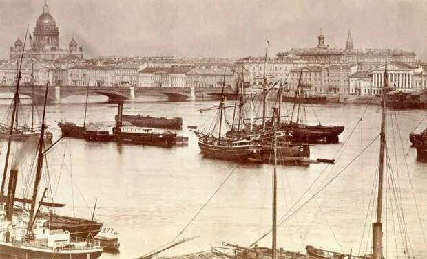 Вид Невы от Морского кадетского корпуса. Санкт-Петербург, 1874 год.