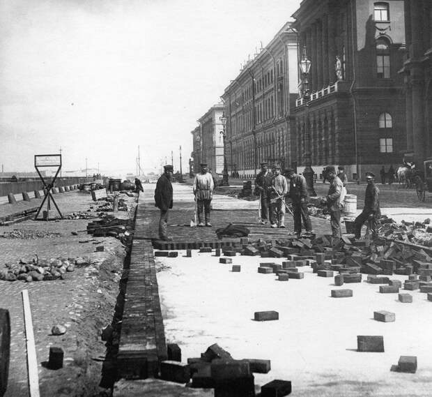 Фотомомент из жизни города: мощение улиц в Петербурге