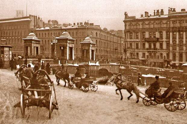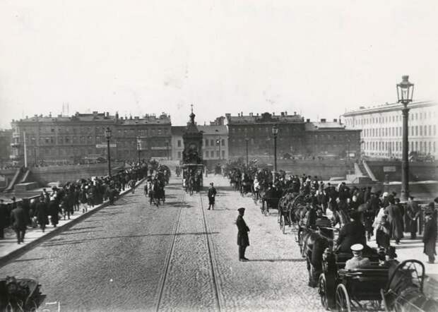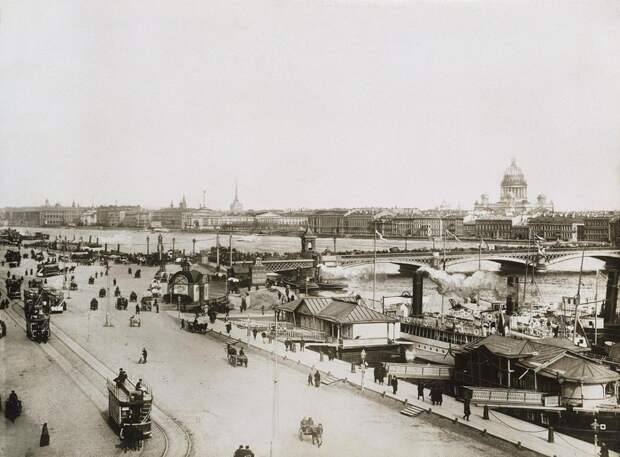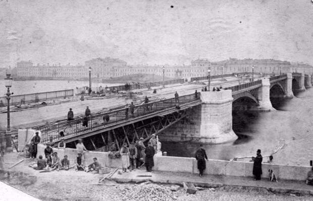 На фото — только что построенный Литейный мост, второй постоянный мост через Неву в Петербурге. Его арочные металлические пролеты и массивные гранитные опоры создают впечатление монументальности и надежности.