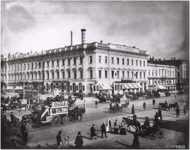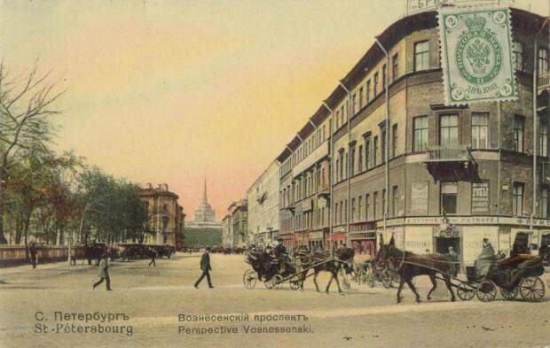 Пересечение Вознесенского проспекта и Большой Морской улицы. На переднем плане меблированные комнаты «Бристоль». Около 1910 года