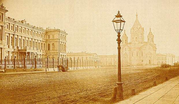 Невский проспект у набережной реки Мойки. Строгановский дворец, 1868 год.