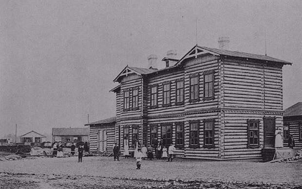 Охтинский вокзал на пересечении Полевой и Панфиловой улиц. 1892 год
