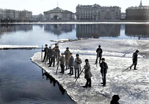 Ледорубы на Неве. Санкт-Петербург, 1905–1910 год.