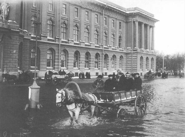 Университетская набережная, затопленная водой во время наводнения 12 ноября 1903 года.