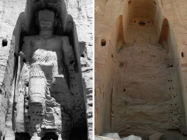 Статуя Будды в Бамианской долине, Афганистан. 1963 и 2008 год