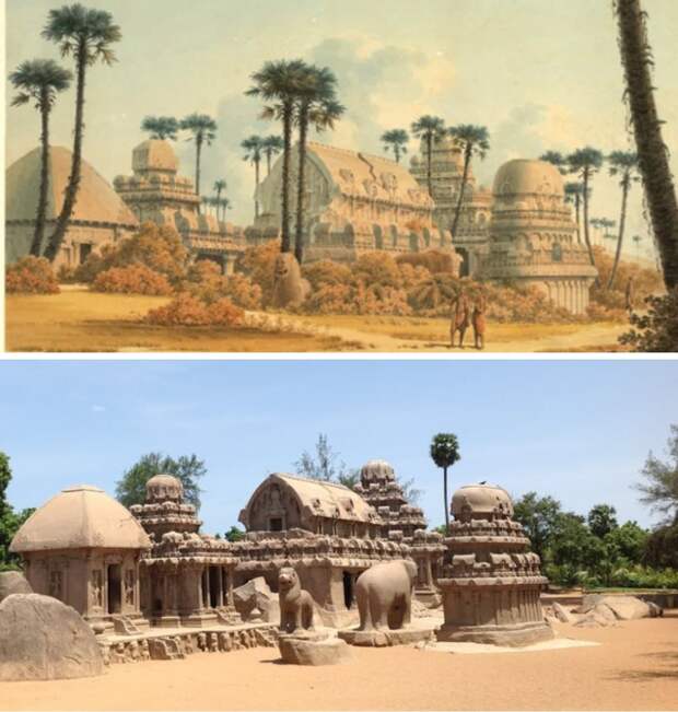 Панча Ратхас в Бенгальском заливе, Индия в 1825 году и сейчас