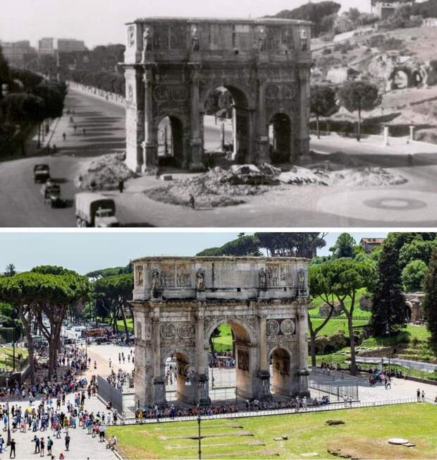 Триумфальная Арка Константина в Риме в 1943 и в 2021 году