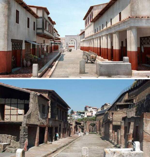 Геркуланум, Италия. В 79 году и в наши дни