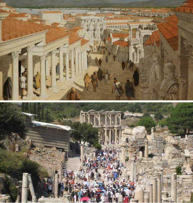 Улица в Эфесе, Турция во II веке и сейчас