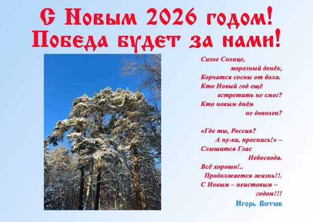 Пусть 2026 год принесёт вам спокойствие, силы, уверенность в завтрашнем дне и простое человеческое счастье.