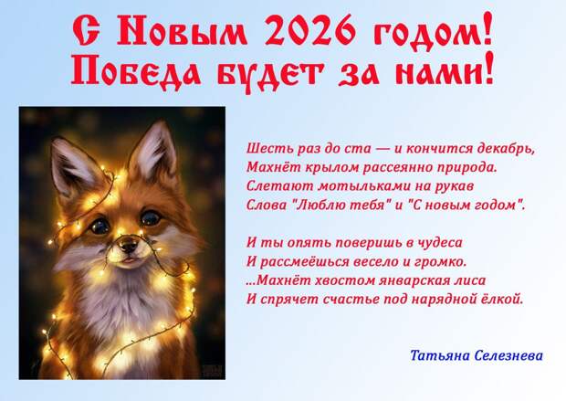 Новый год для всех нас — не просто дата в календаре. Это момент внутреннего перезапуска, когда появляется уверенность, что движение вперёд возможно при любых обстоятельствах, даже если путь обещает быть непростым.