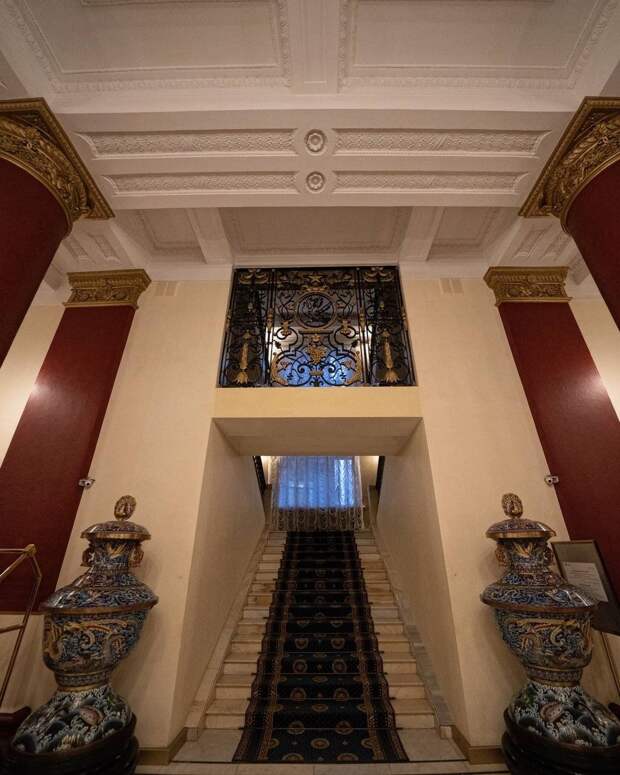 Вестибюль и парадная лестница внутри здания выполнены в стиле ренессанс.