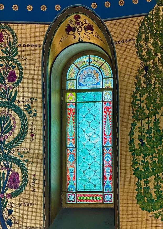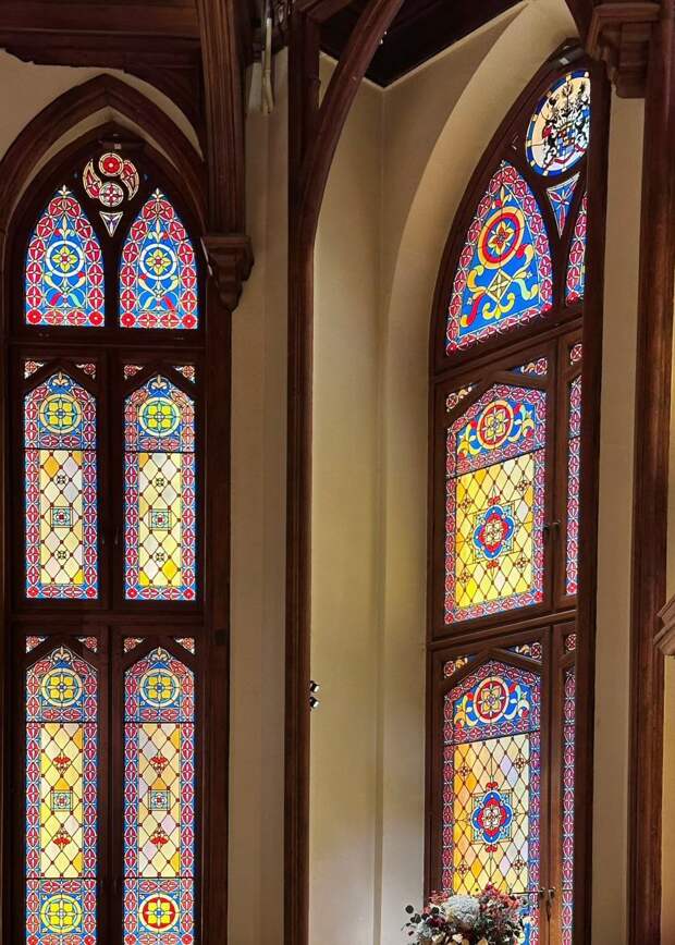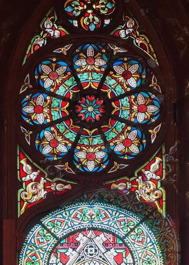 Витражное окно в готической столовой особняка Стахеева