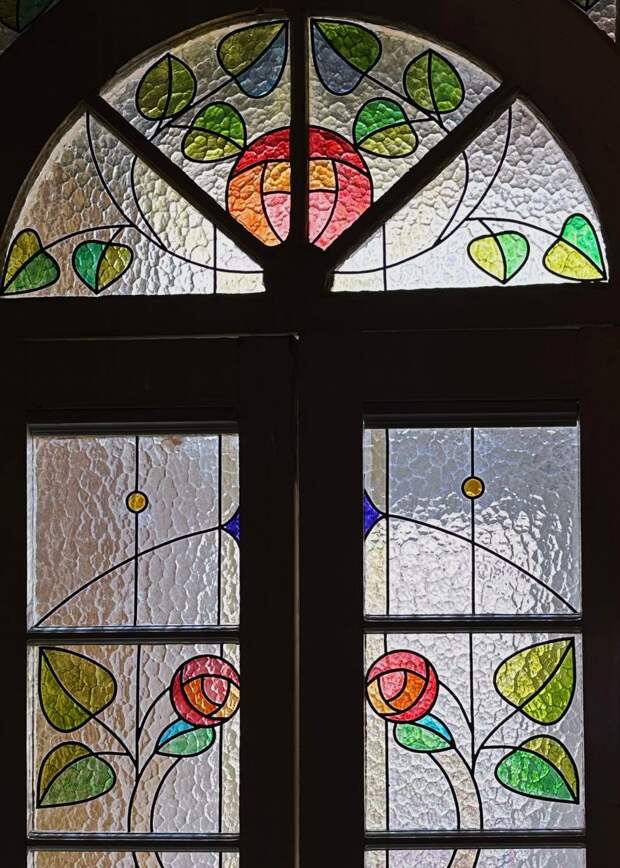 Антикварный витраж в стиле Розы Макинтоша в пабе «Черный Лебедь» на Солянке.